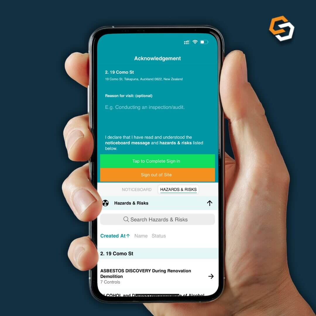 Image: In-app “Site acknowledgement” following GPS Sign-In by contractor