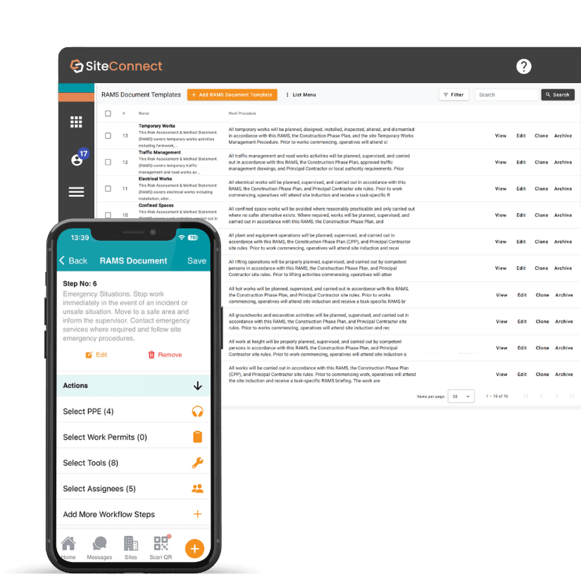 Whether you’re managing one site or twenty, SiteConnect helps you build structured, compliant RAMS that actually get used on site — without drowning in paperwork or chasing signatures.